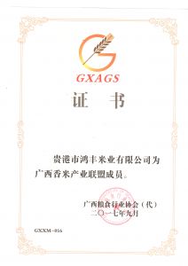 • 廣西 香米聯(lián)盟證書